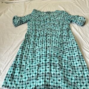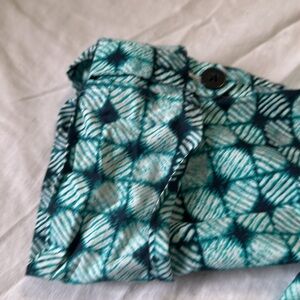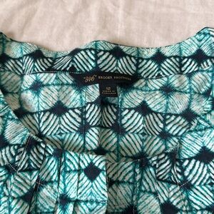 Brooks Brothers Shirt Dress Size 12 Teals Geo Pleated Roll Tab Sleeve