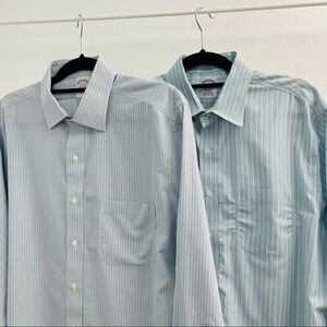 Brooks Brothers Shirt Lot Men 16 Non Iron Blue Stripe Check All Cotton Classic