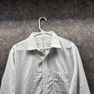 Brooks Brothers Shirt Men 16.5 6/7 White Casual Button Down Traditional Check