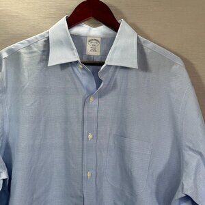Brooks Brothers Shirt Men 17.5 Regent Blue Cotton Non Iron Button Up Long Sleeve