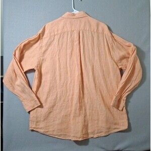 This Brooks Brothers men's shirt in XL size features a Madison fit, made from 100% Irish linen in a Peach Salmon color with a solid pattern. The long sleeve, button-down shirt is perfect for casual occasions and has accents of buttons and the Brooks Brothers logo. With a classic fit and woven fabric type, this stylish and versatile shirt is suitable for all seasons and can be worn in winter, summer, fall, or spring. Made in Egypt as part of the Brooks Brothers 346 product line, this shirt exudes a timeless and classic theme.