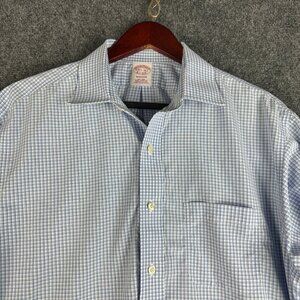 Brooks Brothers Shirt Mens 16.5 Madison Button Up Non Iron Blue White Check Cott