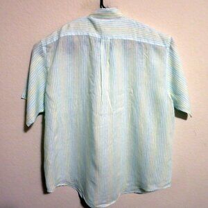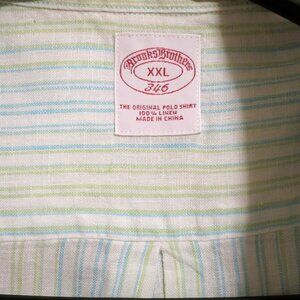 Brooks Brothers Shirt Mens 2XL Short Sleeve Button Linen White Green Striped