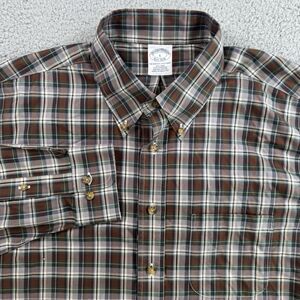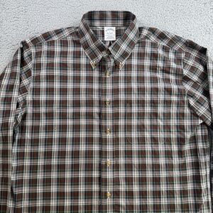 Brooks Brothers Shirt Mens L Brown Plaid Long Sleeve Button Down Casual Cotton