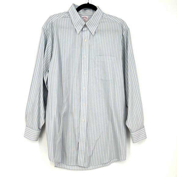 Brooks Brothers Shirt Mens Large 16.5 Blue Striped Yellow Button Down Cotton