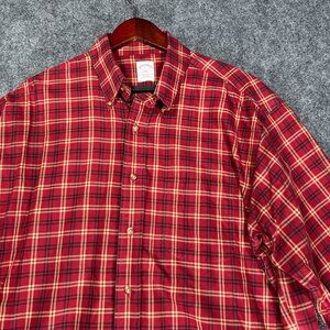 Brooks Brothers Shirt Mens Large Button Down The Original Polo Red Plaid Non Iro