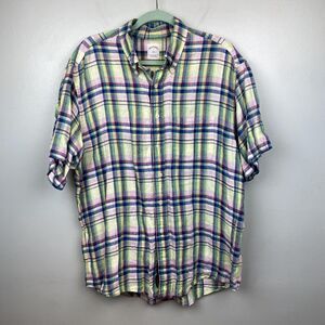 Brooks Brothers Shirt Mens Large Plaid Linen 346 Short Sleeve Button Up Summer