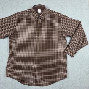 Brooks Brothers Shirt Mens Size XL Brown Plaid Long Sleeve Button Down