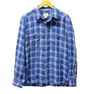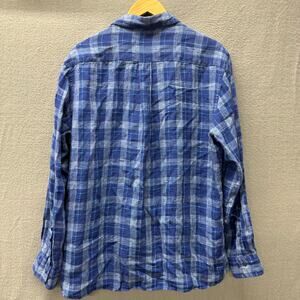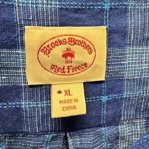 Brooks Brothers Shirt Mens XL Blue Plaid Linen Button Up Coastal Long Sleeve
