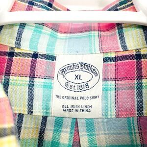 Brooks Brothers Shirt Mens XL Green Pink Plaid Irish Linen Button Up Extra Large