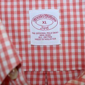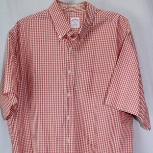 Brooks Brothers Shirt Mens XL Orange White Check 346 Short Sleeve 100% Cotton
