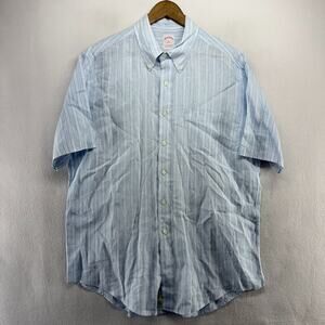 Brooks Brothers Shirt Men's large Blue White linen 346 Striped Lightweight
