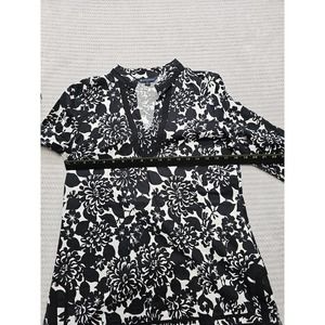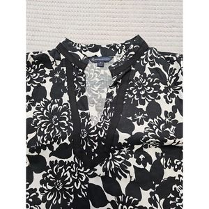 Brooks Brothers Shirt Womens Medium Linen Blend Vcut Neckline Black & White