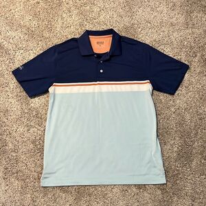 This shirt is made by Brooks Brothers. It is a short sleeve performance polo shirt. Size large and in great pre owned condition. Smoke and pet free home.