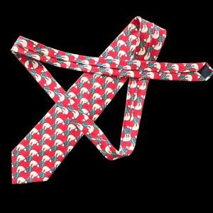 A classic Brooks Brothers Makers silk tie with a fun holiday twist — polar bears balancing on festive patterned balls over a bold red silk base. Made in the USA, this collectible tie perfectly captures vintage Brooks Brothers charm.