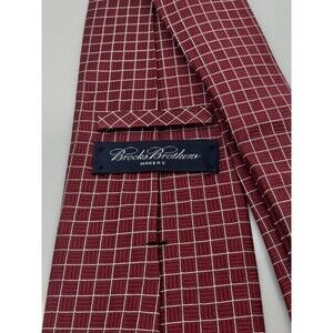 Brooks Brothers Silk Makers Necktie. Red & White Squares Men's Tie 58" x 3.75"