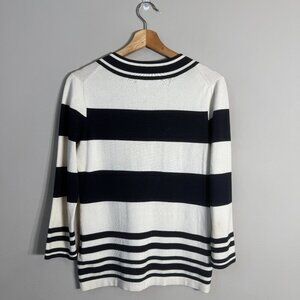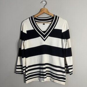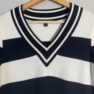 Brooks Brothers Silk Striped V-Neck Tennis Sweater Pullover Women's XS White