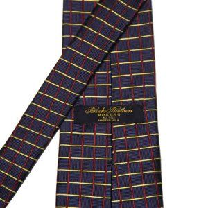 Brooks Brothers Silk Tie Navy Blue Red Yellow Window Pane Check Pattern Men's
