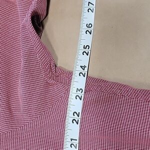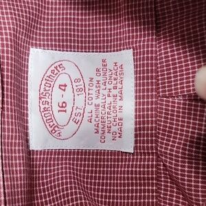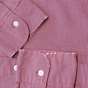 Brooks Brothers Size L (16-4) Burgundy & White Checkered Long Sleeve Button Down Shirt. Used Condition, No Holes, Rips, Stains. Some Visible Rub Wear on Cuffs (Shown in last photo). Long Sleeve with Button Cuff. Button Down Collar. Button Front Closure. Single Chest Pocket. Please refer to measurements in photos to ensure proper fit.