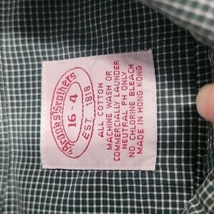Brooks Brothers Size L (16-4) Green & White Checkered Long Sleeve Button Down Shirt. Used Condition, No Holes, Rips, Stains. Some Visible Rub Wear on Cuffs (Shown in last photo). Long Sleeve with Button Cuff. Button Down Collar. Button Front Closure. Single Chest Pocket. Please refer to measurements in photos to ensure proper fit.