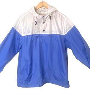 Brooks Brothers Size Large Blue Pullover Hooded Packable Windbreaker Jacket