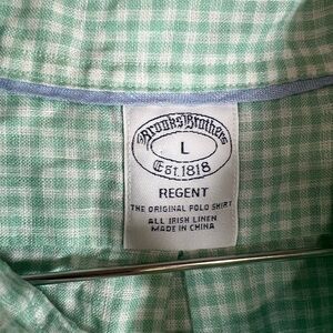 Brooks Brothers Size Medium Regent 100% Irish Linen Mint Checkered Casual Shirt