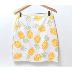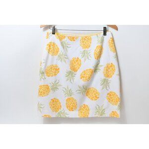 Brooks Brothers Skirt White Yellow Womens 8 Pineapple A-Line Tropical Hawaiian