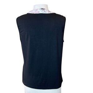 Brooks Brothers Sleeveless Black Tank with Floral Contrast Trim Tie Front XL