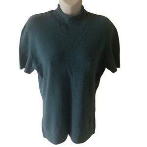 Brooks Brothers Soft Cashmere Mock Short Sleeve Sweater Sz M Teal Blue Cozy Fall