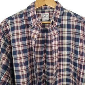 Brooks Brothers Sport Shirt. Blue and Red Plaid, Long Sleeve. LG. E0073