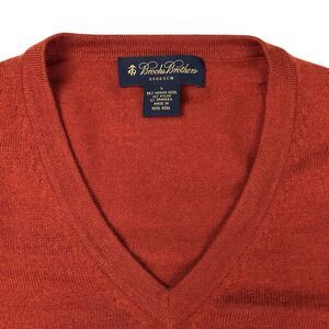 Brooks Brothers Stretch Merino Wool Blend Red/Merlo V Neck Knit Sweater Mens L