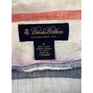Brooks Brothers Striped linen shirt dress, size 4. Cute elbow length sleeves with collar deep v neck and Zipper at side This knee length dress is perfect for summer!