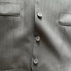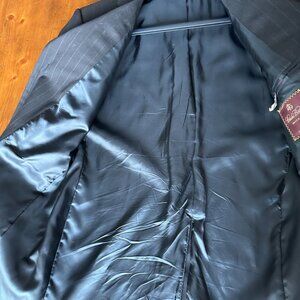 Single breasted, pin stripes, three button front, and sleeves. Single vent. 100% wool. Size 16 (Kids-teenager). Dark blue, buttons could use tightening, also needs dry cleaning as it has been in a closet unused.