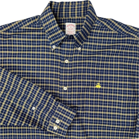 Brooks Brothers Supima Cotton Casual Shirt Blue and Yellow Check Long-Sleeve Button-Down Sz Men's M Non-Iron Traditional Fit