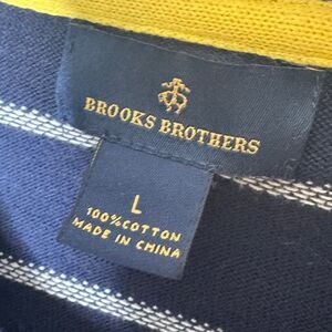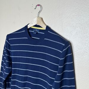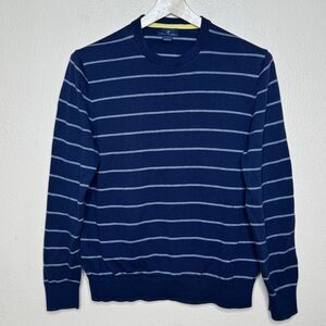 Brooks Brothers Sweater Mens Large Navy Blue Striped Crewneck Cotton Classic Fit