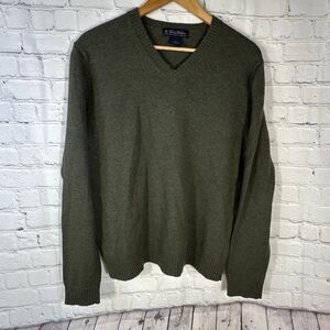 Brooks Brothers Sweater Mens Medium Green Extra Fine Italian LambsWool Vneck