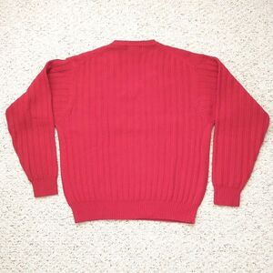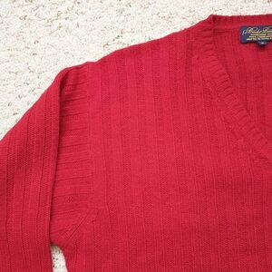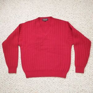 Brooks Brothers Sweater Pullover Men M Red Lambswool V Neck Rib Knit Chunky