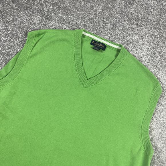 Brooks Brothers Sweater Vest Mens Extra Large V Neck Kelly Green Cotton Workwear