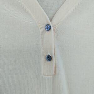 Elegant and versatile, this Brooks Brothers merino wool sweater offers lightweight warmth in a refined silhouette. Crafted from extra-fine Italian merino wool, it features a flattering V-neckline with a button placket and long sleeves. The soft cream hue makes it ideal for year-round wear, pairing effortlessly with trousers or skirts for both office and weekend looks. Perfect for fall and winter layering, this timeless piece embodies understated luxury and classic style.