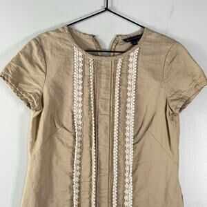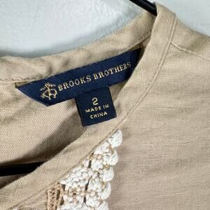 Brooks Brothers Tan Beige Linen Cotton Short Sleeve Shift Crochet Pockets Size 2