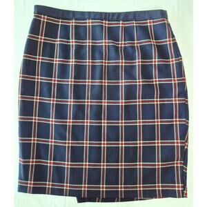 Brooks Brothers Tartan Plaid Wool Skirt Sz 10 Faux Wrap Blue Red Academia Preppy