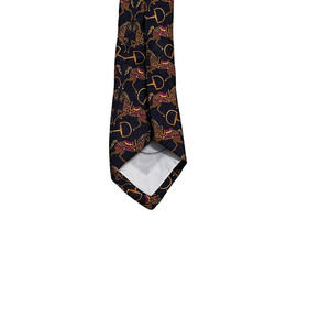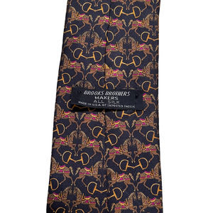 Brooks Brothers Tie 100% Silk Mens Black With Horses & Horsebits 58.5"L X 3.5"W