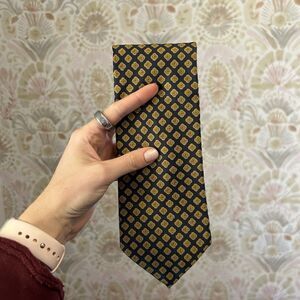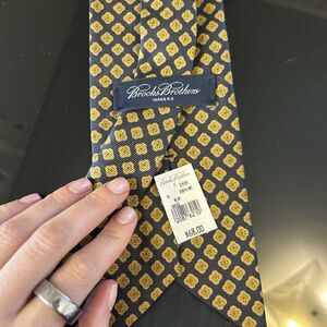 Brooks Brothers Tie Geometric Floral 100% Silk Blue Yellow NEW
