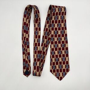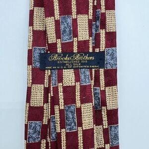 Brooks Brothers Tie Mens Burgundy Silk Geometric Logo 1818 Designer Made In USA