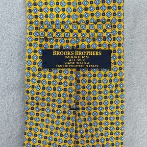 Brooks Brothers Tie Mens Yellow Blue Novelty Necktie 100% Silk