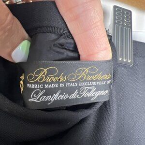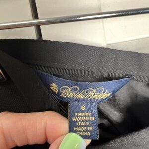 The product is a Brooks Brothers Tollegno Italy 100% Wool Lined Slit Pencil Skirt in size 6 black. This skirt is a classic and versatile wardrobe staple suitable for various occasions such as travel, formal events, parties, workwear, and casual wear. Made of high-quality wool, it features a straight and pencil style with a slit and zip closure. The knee-length skirt is lined and suitable for all seasons, making it a timeless and stylish addition to any woman's closet.