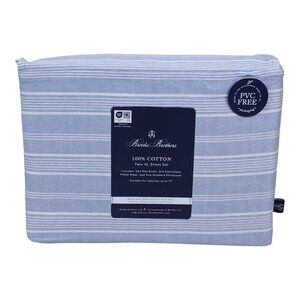 Brooks Brothers Twin XL Sheet Set 100% Cotton Indigo Striped 17" Deep Mattress