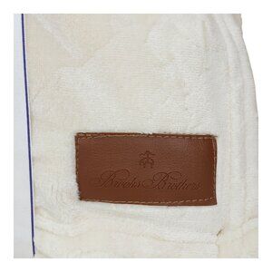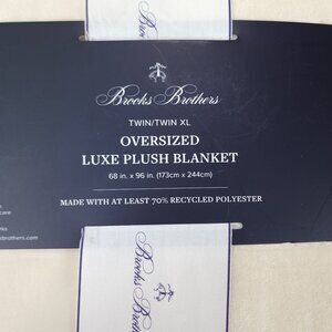 Indulge in the warmth and comfort of Brooks Brothers' oversized luxe plush blanket. Made with at least 70% recycled polyester, this cream-colored blanket perfectly fits twin or twin XL beds, offering both sustainability and style.