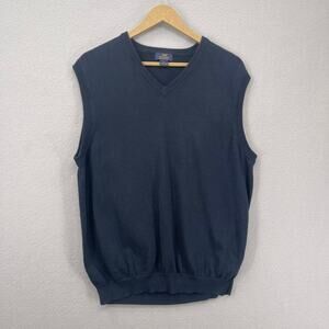 Brooks Brothers Vest Mens Large Supima Cotton Dark Blue Preppy Golf Knit Sweater