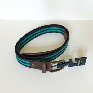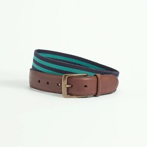 Brooks Brothers Webbed Cotton Belt sz 42 in Green/Navy w/ Brass-Tone Buckle NWT